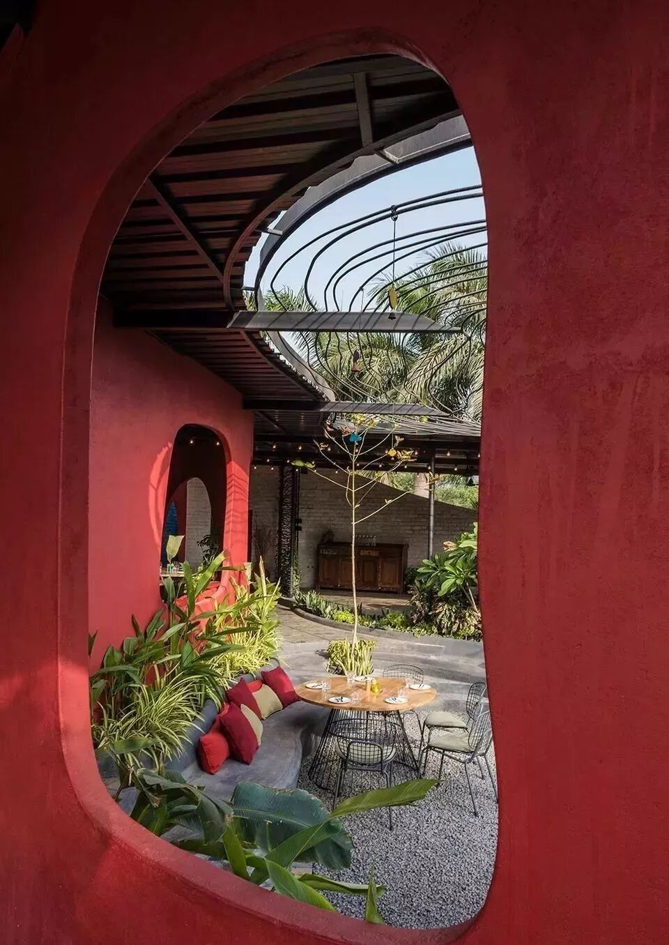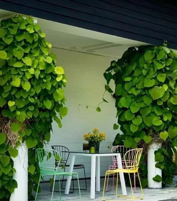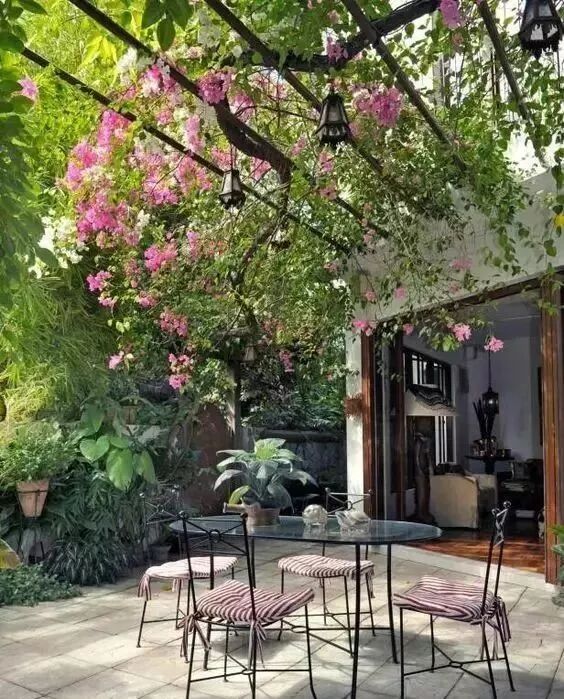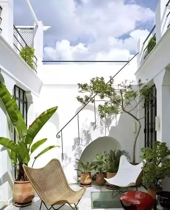 如今的院子本身不會(huì)太大,所以,切忌配很笨重的家具,輕盈的鐵藝家具很適合小面積院落。