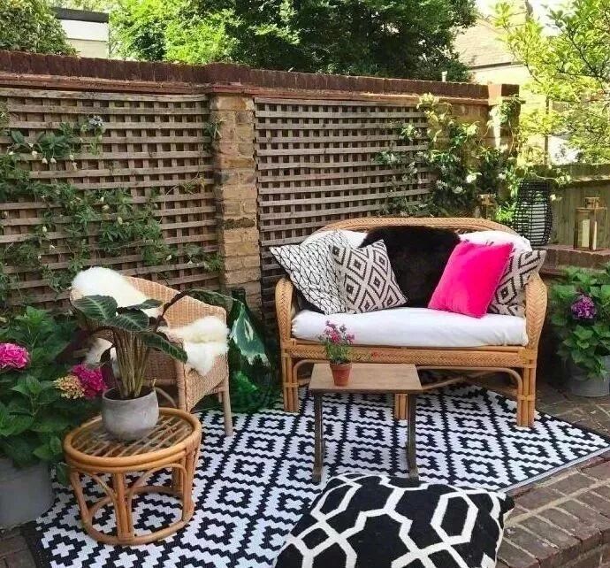 盡量尋找適合室外空間使用的地毯,它們看起來(lái)像天然纖維,但是其實(shí)是由合成纖維制造的,能夠抵擋紫外線照射,并且耐潮濕。